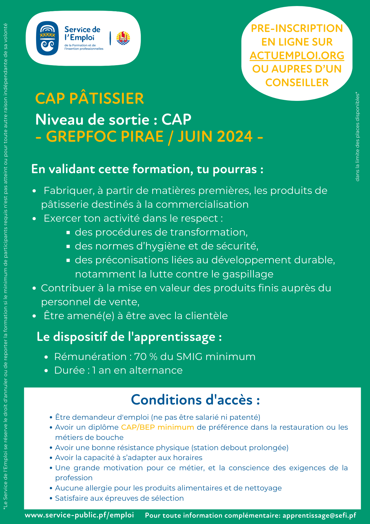 BORA BORA - PRE-INSCRIPTION APPRENTISSAGE MENTION COMPLEMENTAIRE CUISINIER EN DESSERTS DE RESTAURANT (CDR)
