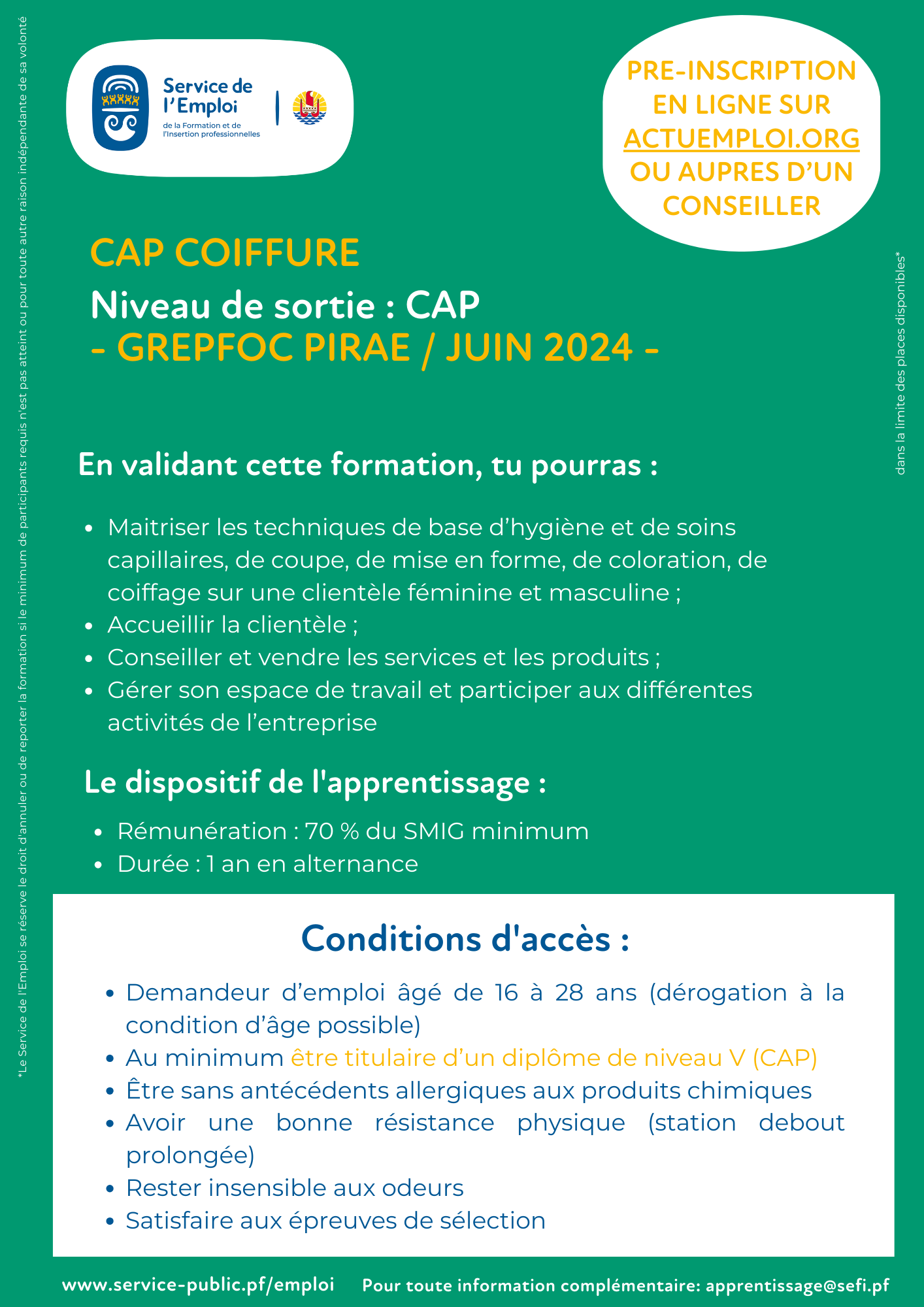BORA BORA - PRE-INSCRIPTION APPRENTISSAGE MENTION COMPLEMENTAIRE CUISINIER EN DESSERTS DE RESTAURANT (CDR)