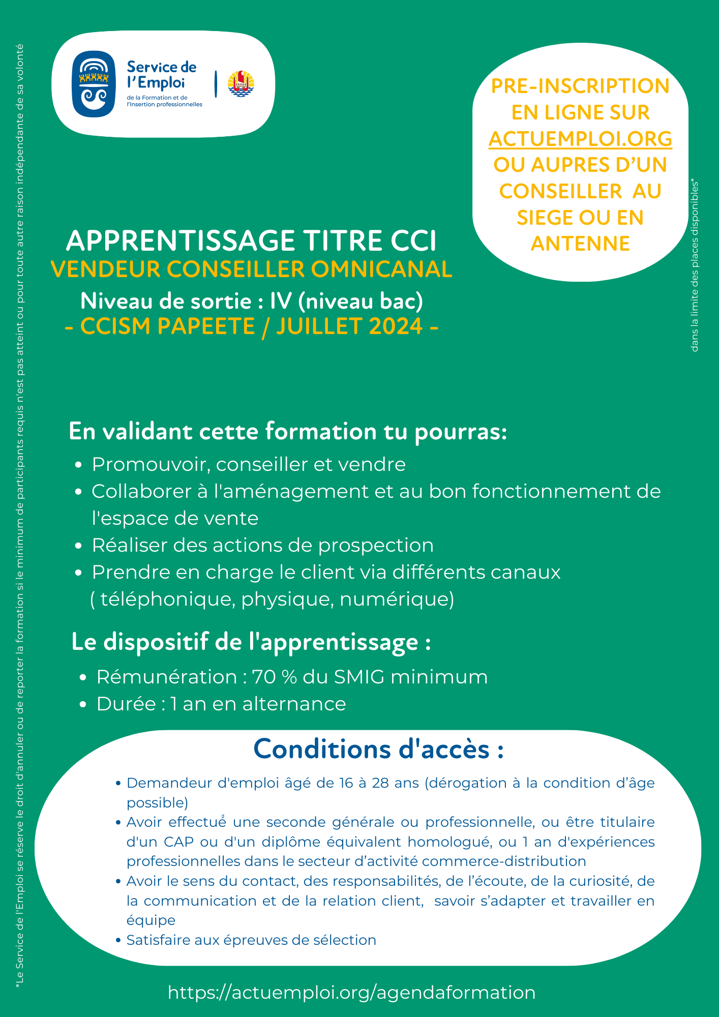 PRE-INSCRIPTION APPRENTISSAGE TITRE CCI GESTIONNAIRE UNITE COMMERCIALE (GUC) - AOUT 2024